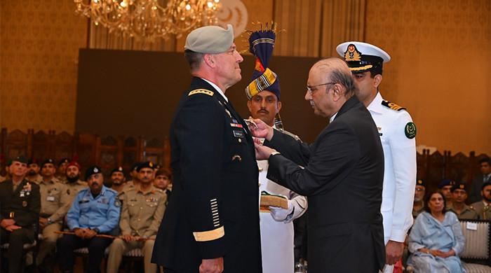 صدر آصف علی زرداری نے ہفتے کے روز ریاستہائے متحدہ کے سنٹرل کمانڈ (سینٹ کام) کے کمانڈر ، جنرل مائیکل ای کوریلہ کو پاکستان اور امریکہ کے مابین پائیدار فوجی تعاون کو آگے بڑھانے میں ان کی مثالی خدمات اور اہم کردار کے اعتراف میں ، نیشان-اِٹیاز (ملٹری) کا نامور ایوارڈ دیا۔