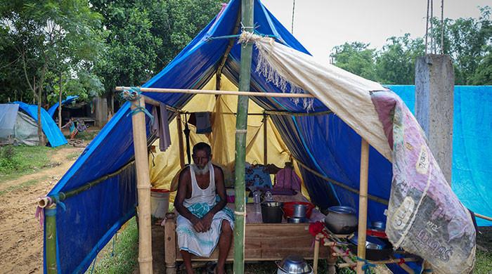 گولپارا: بنگلہ دیش کے قریب شمال مشرقی ہندوستان کے ایک کونے میں نیلے رنگ کے ترپال کے ایک سمندر کے نیچے ، سیکڑوں مسلمان مرد ، خواتین اور بچے ریاستی انتخابات سے قبل آسام میں تازہ ترین کریک ڈاؤن میں اپنے گھروں سے بے دخل ہونے کے بعد پناہ لیتے ہیں۔