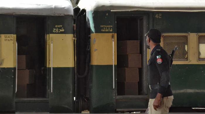 12 مارچ ، 2025 کو کوئٹہ میں ایک ٹرین کے قریب سیکیورٹی فورس کے اہلکار کا ممبر محافظ کھڑا ہے۔ – رائٹرز