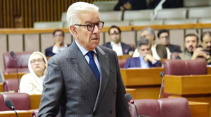 خواجہ آصف اس غیر منقولہ تصویر میں قومی اسمبلی میں تقریر کرتے ہیں: – ایپ