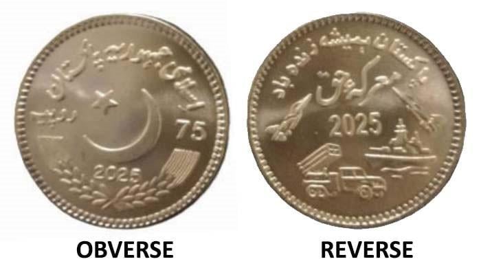 اسٹیٹ بینک آف پاکستان (ایس بی پی) نے جمعہ کو مارکا-حق (حق کی جنگ) میں ملک کی حالیہ فتح کو منانے کے لئے 75 روپے کا یادگاری سکے جاری کیا ، جو ہندوستان کے خلاف فوجی آپریشن جس نے قومی اتحاد اور فخر کو بڑھاوا دیا ہے۔
