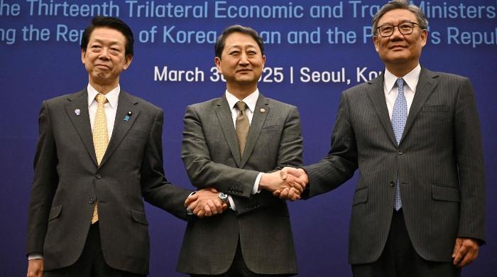 سیئول: چین ، جنوبی کوریا اور جاپان نے اتوار کے روز امریکی صدر ڈونلڈ ٹرمپ کے ذریعہ عائد کردہ نئے نرخوں کے بیڑے کے مقابلہ میں آزادانہ تجارت کو مستحکم کرنے پر اتفاق کیا۔