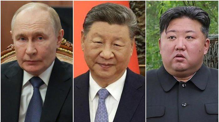 فوٹو کولیج میں روسی صدر ولادیمیر پوتن ، چینی صدر ژی جنپنگ اور شمالی کوریا کے رہنما کم جونگ ان کو دکھایا گیا ہے۔ – رائٹرز