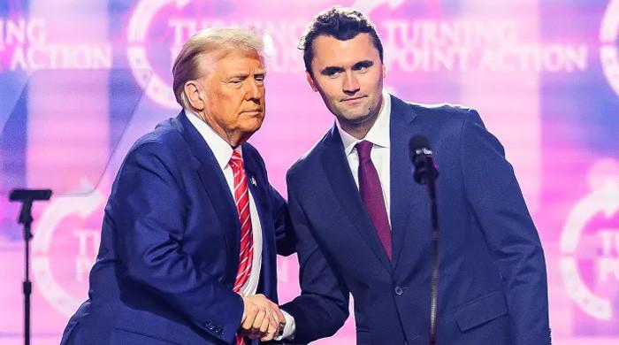 چارلی کرک ، دائیں ، امریکی صدر ڈونلڈ ٹرمپ کے ساتھ امریکہ فیسٹ میں اسٹیج پر گفتگو کرتے ہیں ، اور دسمبر 2024 میں امریکہ کی سالانہ کانفرنس کا رخ کرتے ہیں۔ – اے ایف پی/فائل