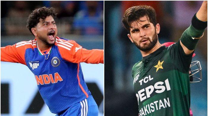14 ستمبر 2025 کو متحدہ عرب امارات میں ایشیا کپ میچ کے دوران ہندوستان کے کلدیپ یادو (بائیں) اور پاکستان کے شاہین آفریدی کی تصویر۔ – رائٹرز/اے ایف پی