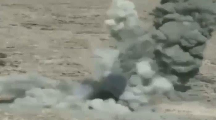 ایک دھماکے کا ایک اسکرین گریب جب حکام کرام میں بنکروں کو مسمار کرتے ہیں۔ – جیو نیوز/فائل
