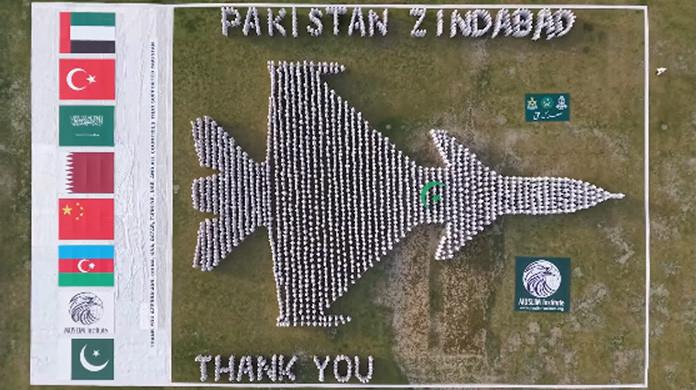 جھانگ میں شہریوں نے جے -10 سی لڑاکا جیٹ کی ایک حیرت انگیز انسانی تشکیل کی نمائش کی تھی تاکہ مسلح افواج نے ہندوستانی جارحیت کا فیصلہ کن ردعمل ظاہر کرنے کے بعد پاکستان ایئر فورس (پی اے ایف) اور ملک کے قریبی اتحادیوں کو خراج تحسین پیش کیا۔