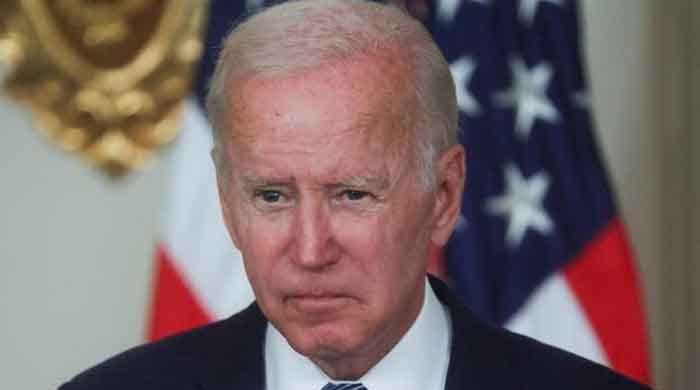 سابق امریکی صدر جو بائیڈن نے واشنگٹن ، 16 اگست ، 2022 میں وائٹ ہاؤس کے اسٹیٹ ڈائننگ روم میں “افراط زر میں کمی ایکٹ 2022” کے لئے دستخطی تقریب کے دوران تقریر کرتے ہوئے رکے۔