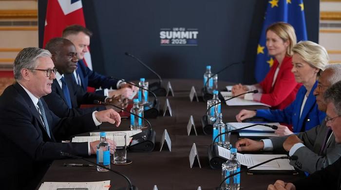 برطانیہ کے وزیر اعظم کیئر اسٹارر نے برطانیہ اور یورپی یونین کے مابین ایک اجلاس کے دوران یورپی کمیشن کے صدر عرسولا وان ڈیر لیین ، اور یورپی کونسل کے صدر انتونیو کوسٹا سے بات کی ہے ، تاکہ برطانیہ ، برطانیہ ، 19 مئی ، 2025 میں بریکسیٹ کے بعد اپنے پہلے سرکاری سربراہی اجلاس میں قریبی تعلقات پر تبادلہ خیال کیا جاسکے۔ – رائٹرز۔
