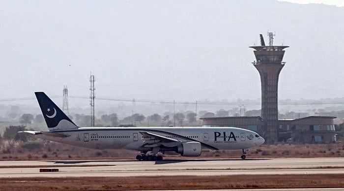 پاکستان انٹرنیشنل ایئر لائن کے طیارے 10 جنوری 2025 کو اسلام آباد بین الاقوامی ہوائی اڈے پر پیرس کے لئے روانہ ہونے کی تیاری کر رہے ہیں۔ – اے ایف پی