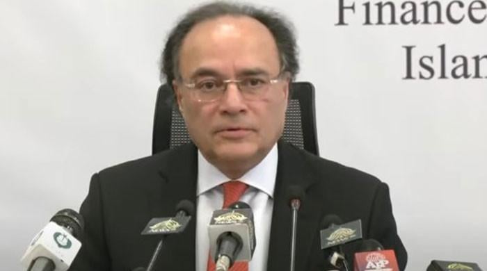 وزیر خزانہ محمد اورنگزیب 9 جون ، 2025 کو اسلام آباد میں پاکستان اکنامک سروے 2024-25 پیش کرتے ہوئے تقریر کرتے ہیں۔-جیو نیوز کے ذریعے اسکرین گریب