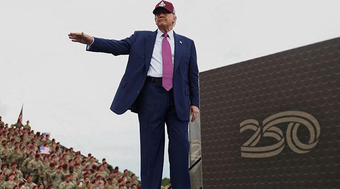 امریکی صدر ڈونلڈ ٹرمپ نے 10 جون ، 2025 کو شمالی کیرولائنا ، فورٹ بریگ میں ایک ریلی کے دوران اشاروں کا اشارہ کیا۔ – رائٹرز
