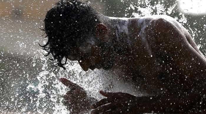 ایک شخص سڑک کے کنارے ٹھنڈا ہوتا ہے جب کراچی میں ہیٹ ویو جاری ہے۔ – inp/فائل