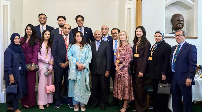 برطانوی پاکستانی ارب پتی اور مخیر حضرات سر انور پرویز (دائیں سے تیسرا) گروپ کی تصویر کے لئے پوز کرتے ہیں۔ – رپورٹر