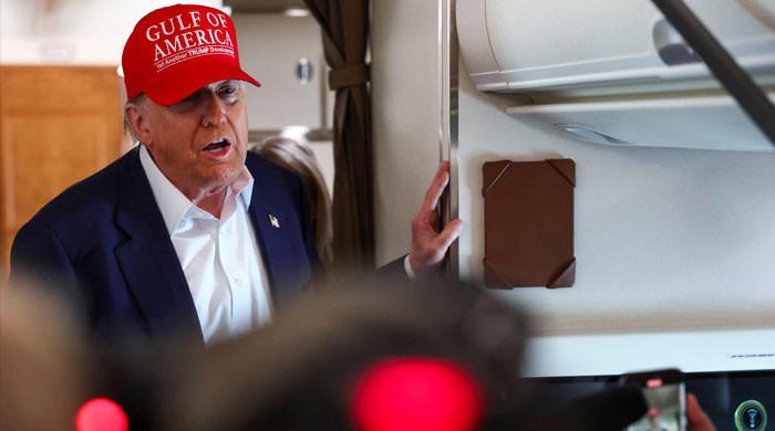 امریکی صدر ڈونلڈ ٹرمپ نے ایئر فورس میں سوار صحافیوں سے مشترکہ بیس اینڈریوز ، میری لینڈ کے راستے پر سوار ایک عارضی تارکین وطن حراستی حراستی مرکز کا دورہ کرنے کے بعد ، فلوریڈا ، امریکہ ، 1 جولائی ، 2025 میں ، “الیگیٹر الکاتراز” کے نام سے جانا جاتا ہے۔