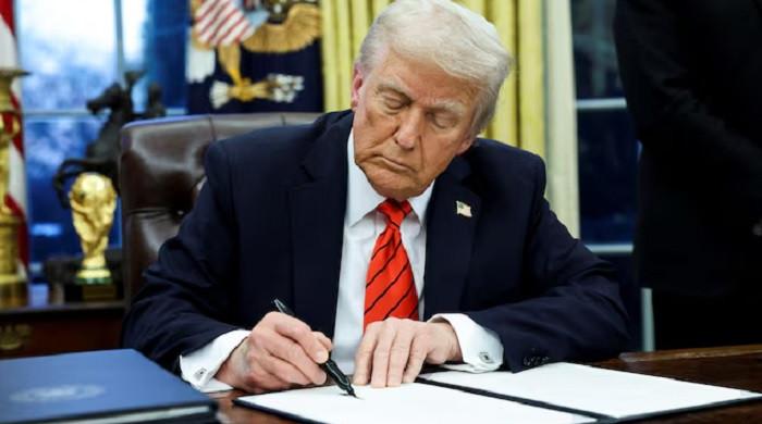 صدر ڈونلڈ ٹرمپ نے 10 فروری ، 2025 کو واشنگٹن ، واشنگٹن میں وائٹ ہاؤس کے اوول آفس میں ایک ایگزیکٹو آرڈر پر دستخط کیے۔